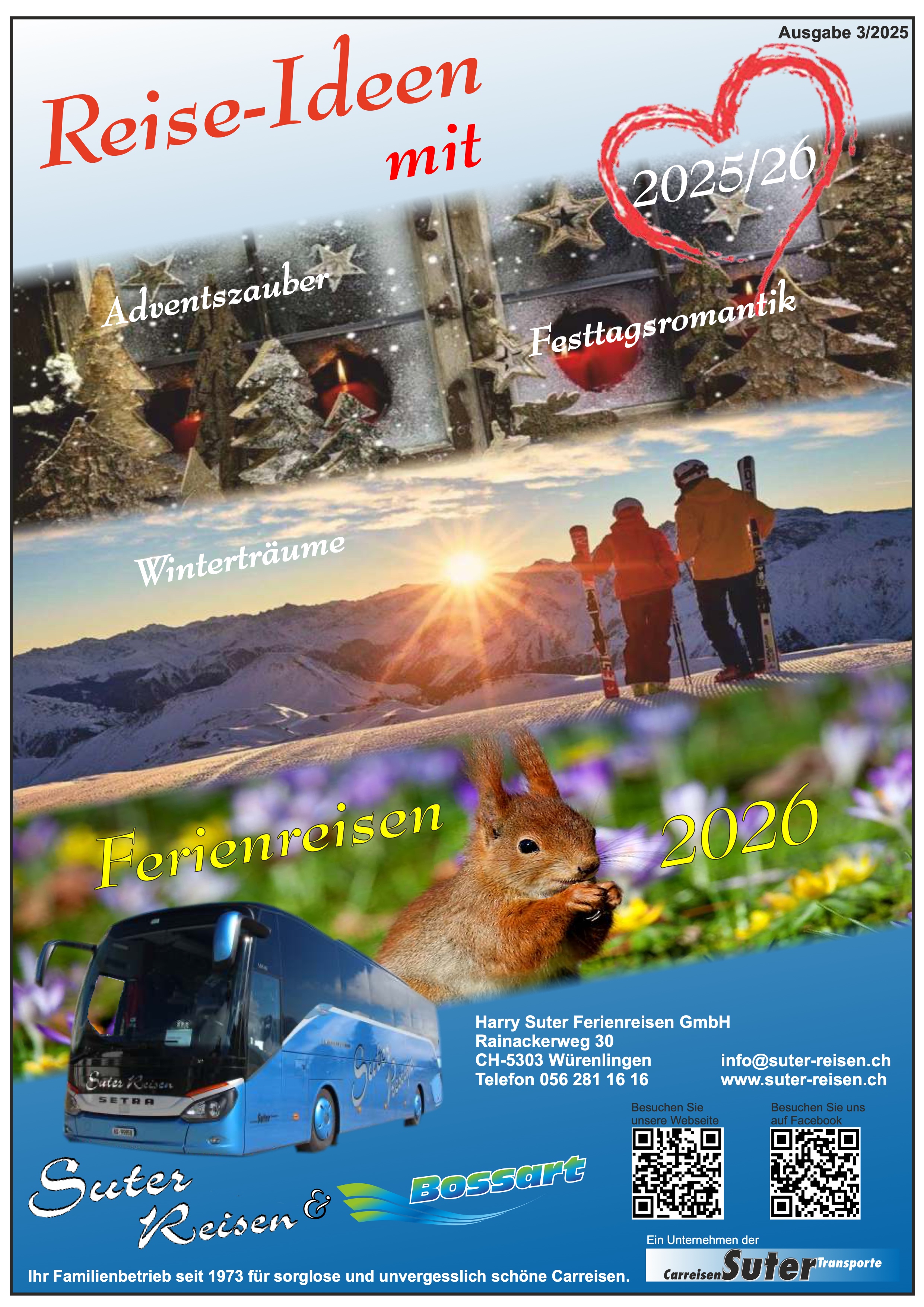 Mit grosser Freude präsentieren wir Ihnen unseren aktuellen Katalog für die bevorstehenden Herbst- und Winterreisen sowie einen ersten Ausblick auf unsere Rundreisen 2026. Ob stimmungsvolle Adventsfahrten, festliche Weihnachtsreisen oder spannende Reiseideen für das kommende Jahr – bei uns finden Sie sorgfältig ausgewählte Erlebnisse mit Herz und persönlichem Service.